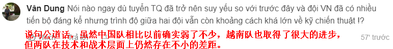 还有球迷妄自菲薄地表示,以前没怎么看过中国队的比赛,但现在看完才发现,越南队现在还不够资格站在亚洲这个舞台上(下图)。