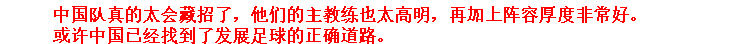 看来,至少这次,中国队把越南球迷打服了。下次他们不敢轻视中国足球了。