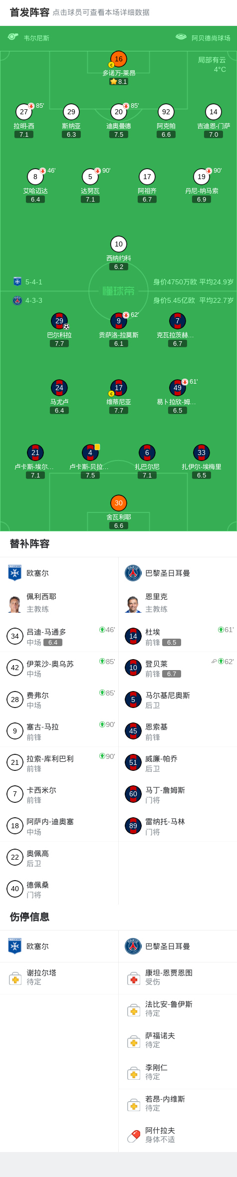 第80分钟,登贝莱助攻,巴尔科拉单刀破门,巴黎1-0