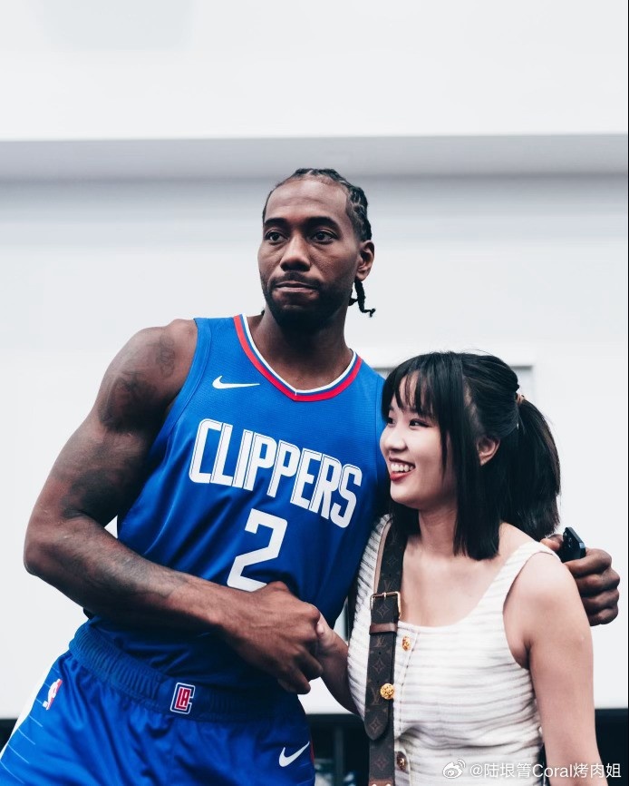 前记者、莱昂纳德中方经纪人“烤肉姐”陆垠箐晒出与小卡的合照,并写道:“中国功夫卡 🙇”
